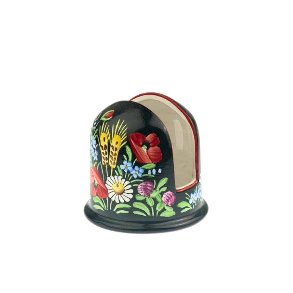 Stojánek na ubrousky z černé chodské keramiky. Verze v typickém, zaobleném tvaru. Ideální doplněk pro váš jídelní stůl. Lze použít na ubrousky nebo tácky pod sklenice.
