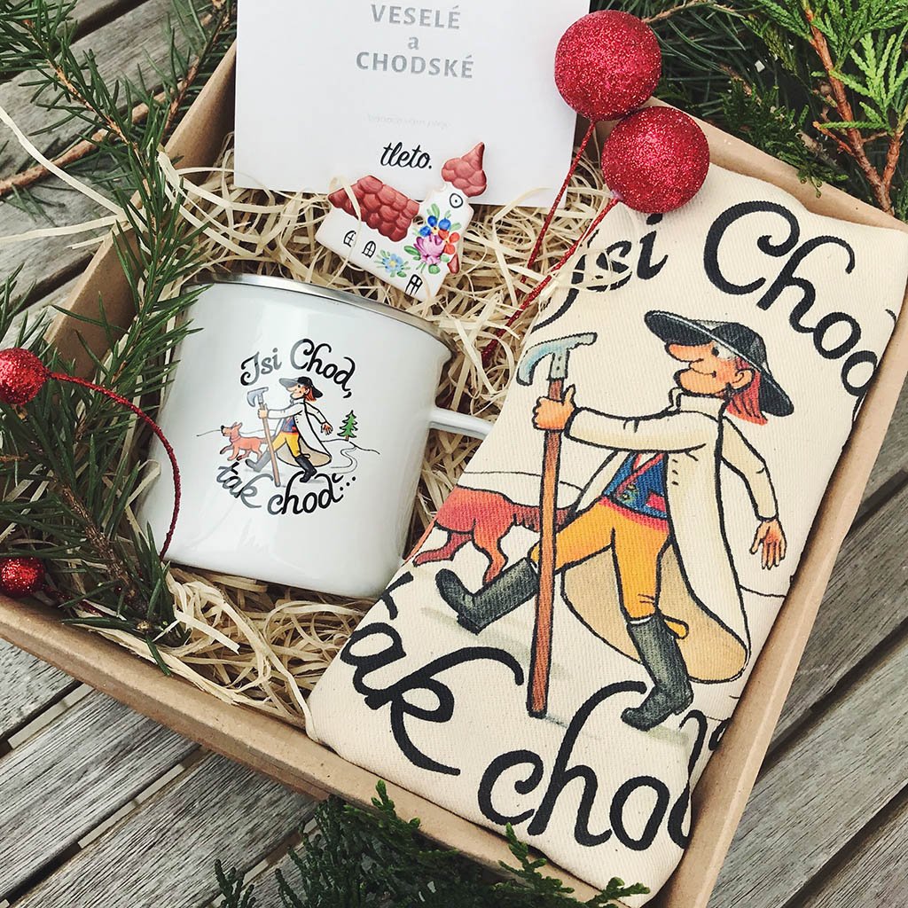Vánoční balíček, který oči rozzáří. Uvnitř najdete plecháček a plátěnou tašku "Jsi Chod, tak choď" a ručně malovaný keramický kostelík se zavěšením třeba přímo na vánoční stromeček. Vše je zabaleno v dárkové krabičce a vystlané dřevěnými hoblinkami. Prostě ideální vánoční dárek, který opravdu udělá radost.